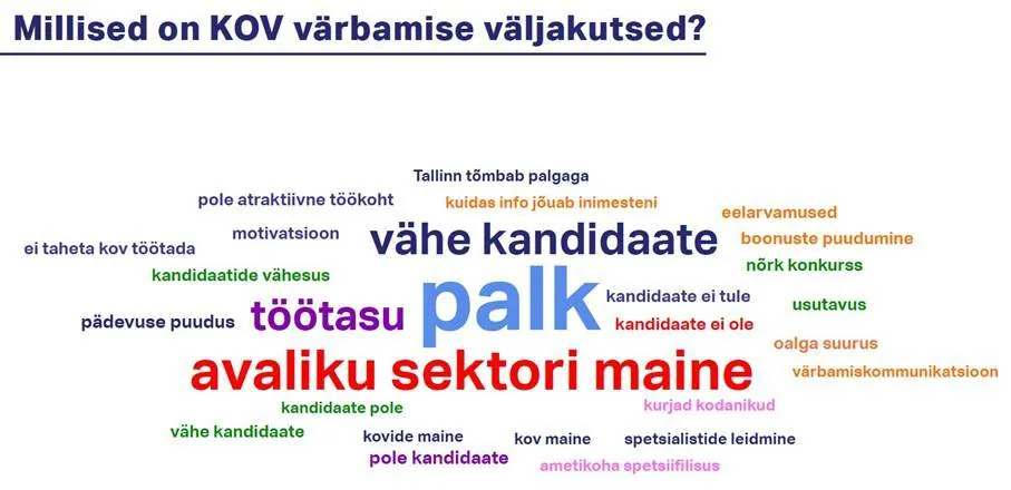 Aruteludes kõlasid omavalitsuste korduvad mured: kandidaatide vähesus, avaliku sektori mainebarjäärid, ametikohtade spetsiifika, „Tallinn tõmbab palgaga“ efekt ning värbamiskommunikatsiooni killustatus. Samas jäi kõlama ka teine pool, et omavalitsuse töö on sageli sisuline ja mõjuga, kuid see lugu ei jõua kandidaadini piisavalt arusaadavalt.